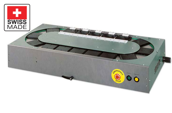 The servo-driven Carousel oval racetrack indexer from microPrint is a robust, Swiss-engineered automation platform purpose-built for high-speed, multi-color pad printing applications. Designed to seamlessly integrate with microPrint’s MS and ML Series pad printing machines, this precision indexer delivers repeatable positioning, exceptional print registration, and durable performance under continuous industrial use.